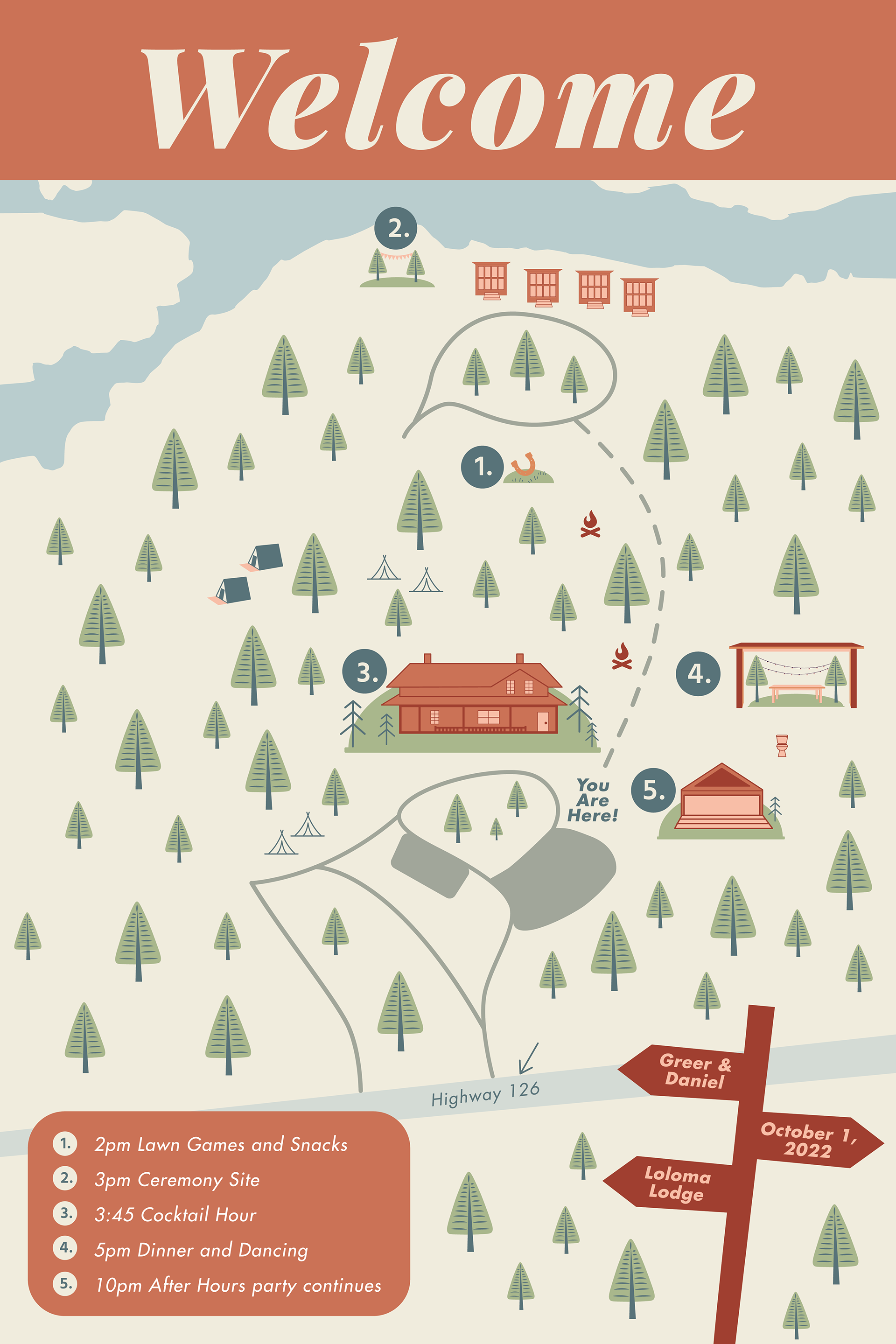 I had the honor of creating custom wayfinding for a wedding at the beautiful Loloma Lodge along the McKenzie River.